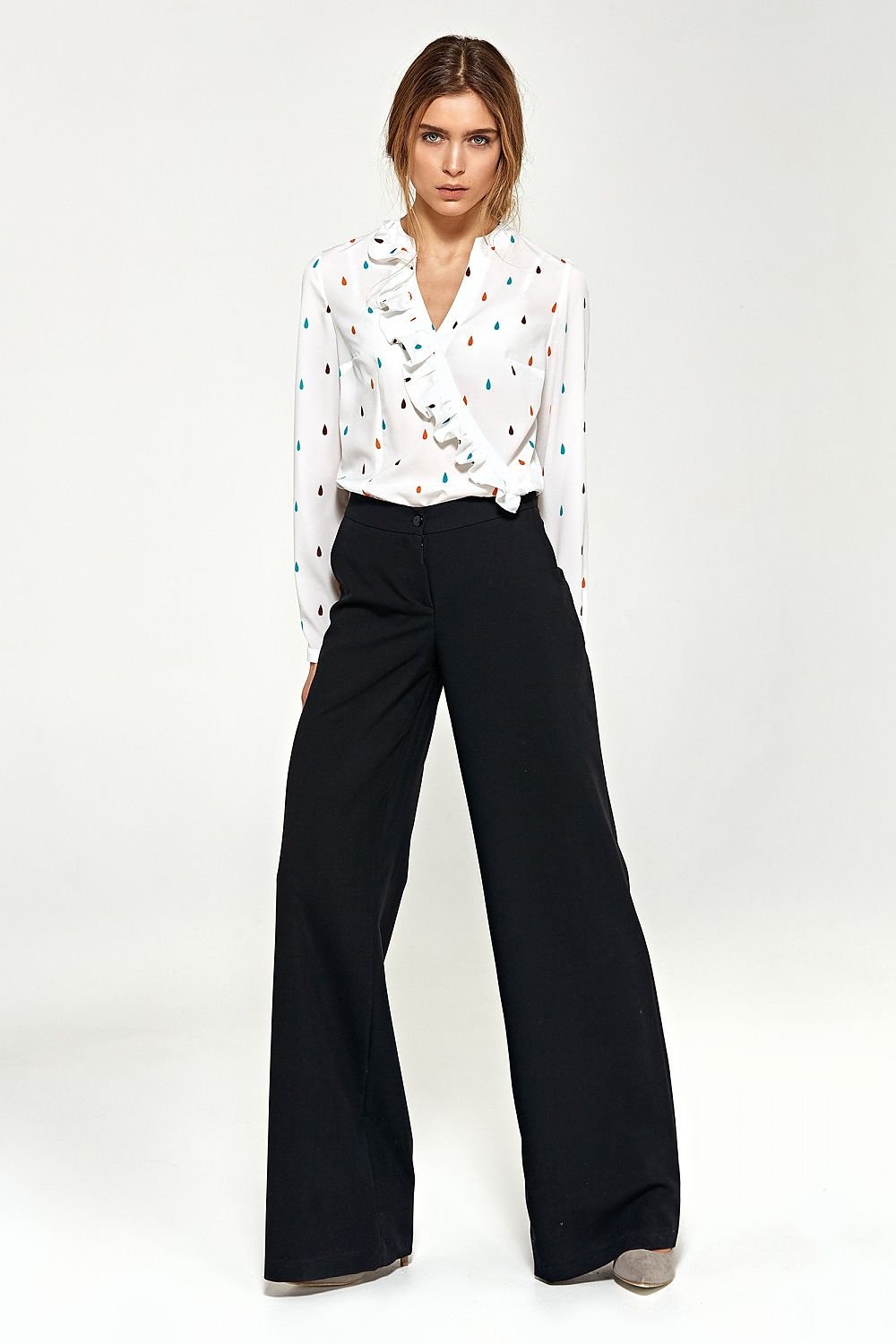 Einer der trendigsten Hosenschnitte der Saison! Ausgestellte Palazzohose mit gepressten Beinen. Das Modell hat praktische Taschen.